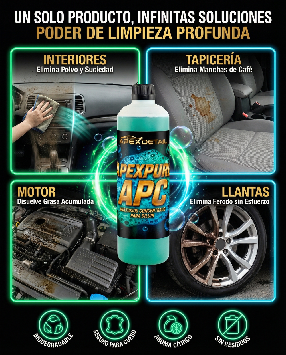 ACABADO ORIGINAL (OEM): A diferencia de otros limpiadores que dejan rastros blanquecinos o brillos grasientos, ApexPure deja un acabado completamente neutro y natural.